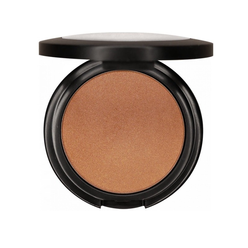 Aplicación: Con una brocha para polvos, aplica una ligera capa de los polvos bronceadores en el rostro, hombros, clavículas o cualquier otra área que desees realzar.